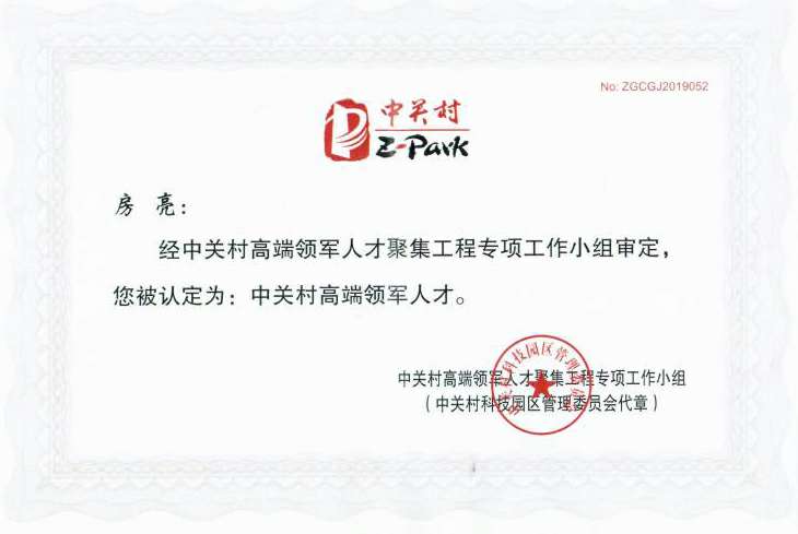 这一次房亮博士获得2019年度中关村高端领军人才的殊荣,不仅是对房亮博士创业领军能力的认可,也是对国科开云官方端网站登录平台入口-开云(中国)未来发展的认可。